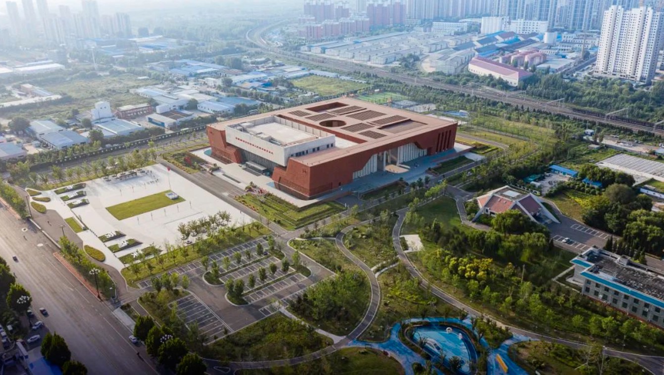 山東省勞模勞動工匠精神教育基地位于全國勞模時傳祥的家鄉(xiāng)齊河縣,總建筑面積約3.9萬平方米,建筑的構(gòu)思立意為“勞動托起中國夢”。我們用簡潔、有力量的的幾何形體,隱喻“托舉”之形,表達(dá)對勞動精神的崇敬之意。通過幾何構(gòu)成的美感、大面積的虛實對比,和對建筑比例與尺度的的控制,實現(xiàn)豐富的空間感受,我們重視光線對建筑體量和空間的渲染,使建筑具有雕塑感和靜謐感。